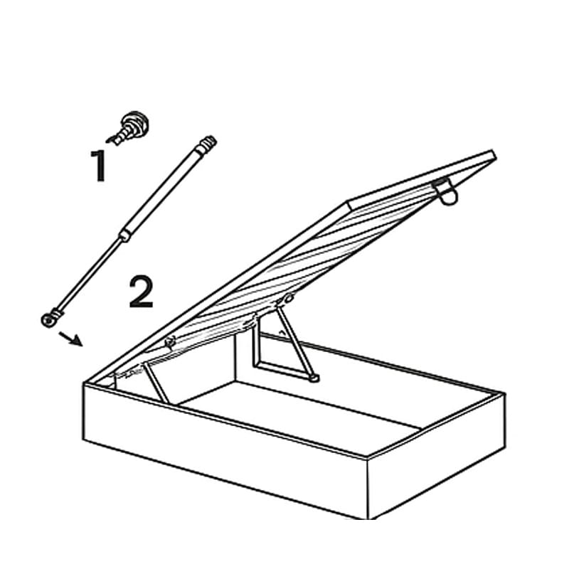 (onderbak) en dan de bovenste (matrasframe). Let op: dikkere kant van de gasveer moet boven.