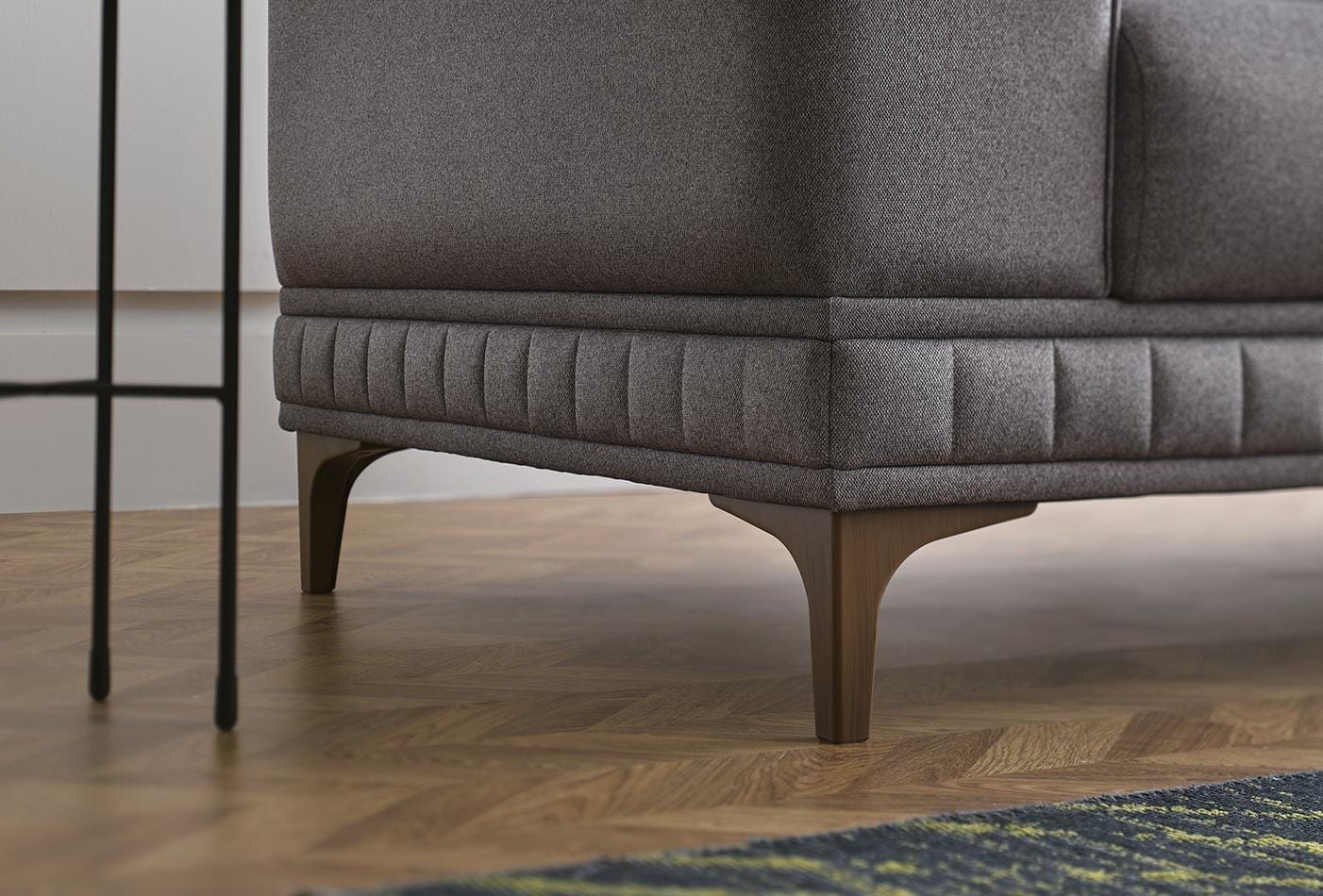 PAVIA 2-zitsbank geeft prioriteit aan comfort met zijn ergonomische structuur en brengt een eenvoudige en elegante look in woonruimtes. Terwijl de hoge comfortabele zitting en rugleuning maximaal comfort bieden, verhoogt hij de duurzaamheid met zijn door metaal ondersteunde houten constructie. De hoge pootstructuur is speciaal ontworpen om comfortabel en gemakkelijk schoon te maken en heeft 3 verschillende kleuren: walnoot, eiken en antraciet.