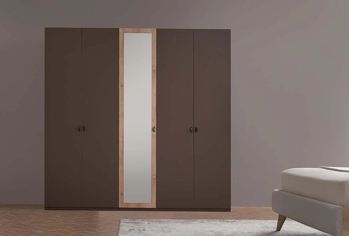 POLKA kledingkast 5-deurs brengt een eenvoudige elegantie in de decoratie van uw slaapkamer met zijn elegantie verborgen in functionele details, metaalgrijze handgrepen en natuurlijke spiegelapplicatie. Het ontwerp is ontwikkeld voor stil gebruik en benadrukt de rust en kalmte die u in uw slaapkamer wilt beschermen. POLKA kledingkast 5-deurs weerspiegelt de eenvoud van grijs en helpt u een moderne stijl te creëren in uw slaapkamer. Het biedt ook een veilig gebruik met zijn zelfvertragende scharniersysteem.